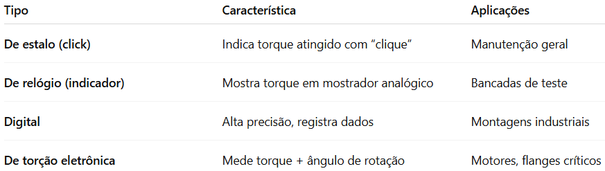 Tipos de torquímetro e aplicações